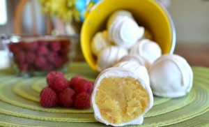 - Lemon Cake Balls with a Raspberry White Chocolate Covering