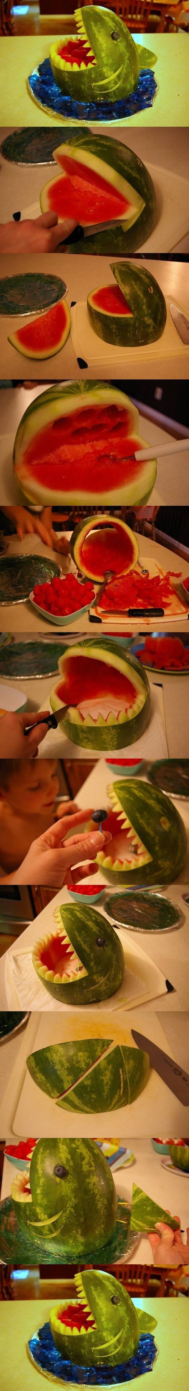 We’ll admit, this is the toughest idea to execute on the list. In fact, you could probably watch more than a few hours of Shark Week trying to get it right but it’s just too cool not to include. A watermelon shark doesn’t take a lot of tools just a melon baller, a knife and more patience than most of us have available on our best day. If you’re feeling brave, our friends at LoveThisPic.com will run you through the steps.