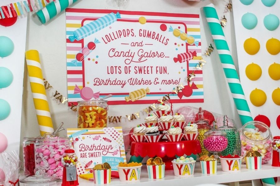 A candy-themed birthday party is another idea that is great for DIY parents on a budget. You can find all types of candy from chocolates, lollipops to gumballs in large batches for relatively low prices at your local candy or party store. These places provide various options in several colors so you can pick your favorite. Plus the food can also be the decor! Buy some clear mason jars and fill them up with all the different sweets to create cute table pieces or a “candy bar”.